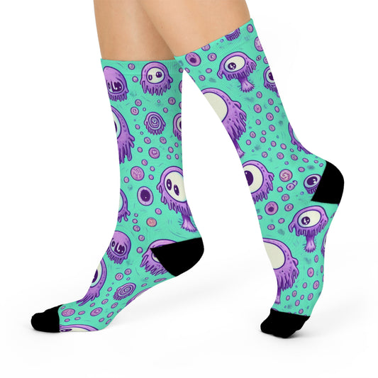 Purple Drippy Mushroom Cushioned Crew Socks